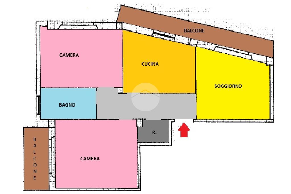 L'immobile è così composto: ingresso, soggiorno, cucina abitabile, 2 camere da letto, bagno finestrato, ripostiglio e 2 balconi.
