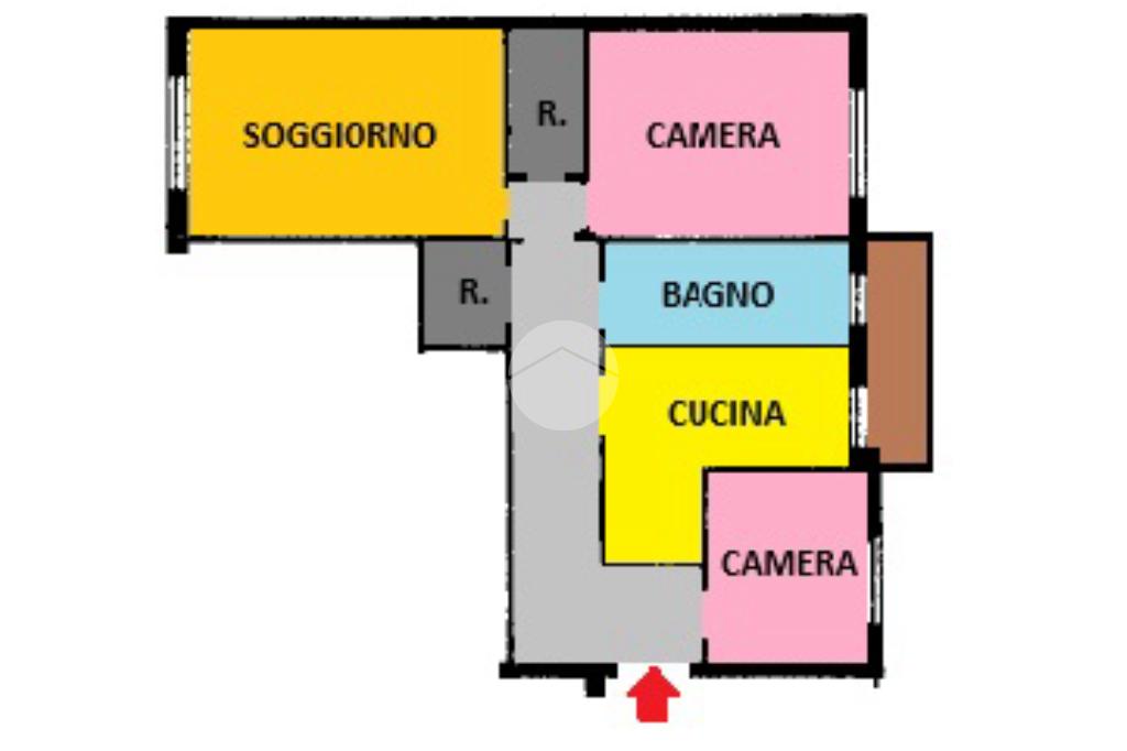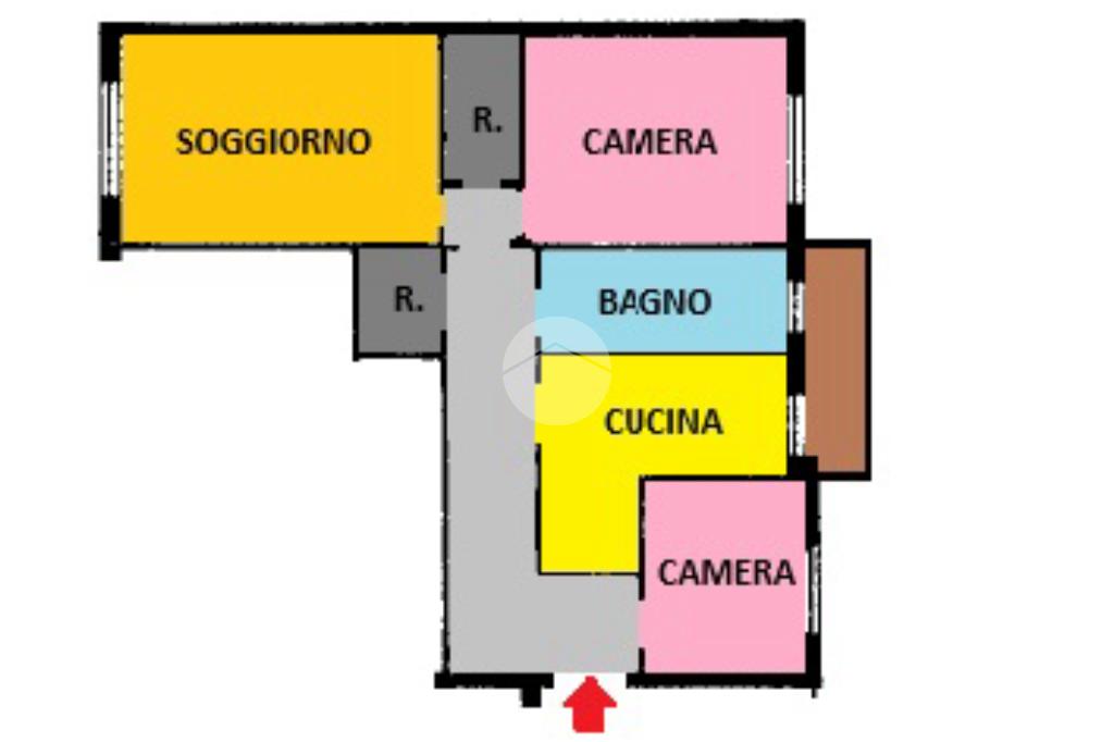 L'appartamento è così composto:ingresso, soggiorno, cucina abitabile con uscita sul balcone, due camere da letto matrimoniali, bagno finestrato e due ripostigli.