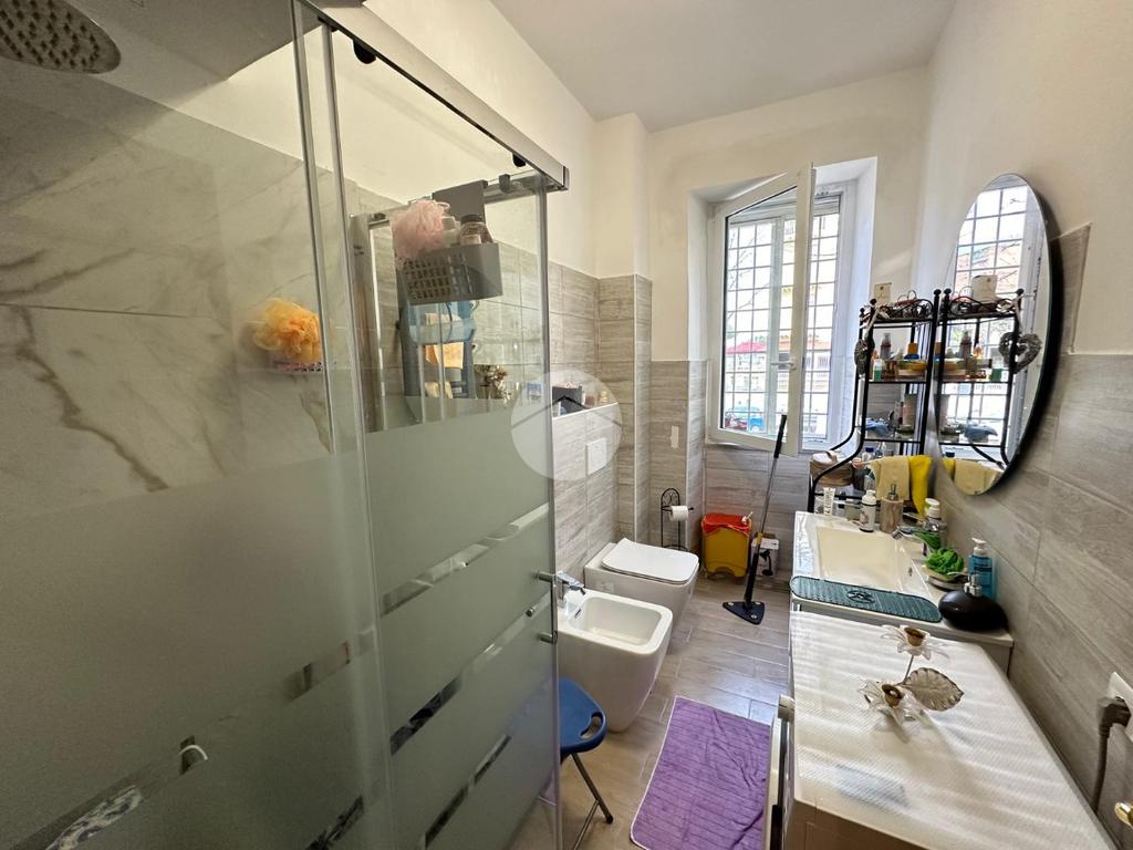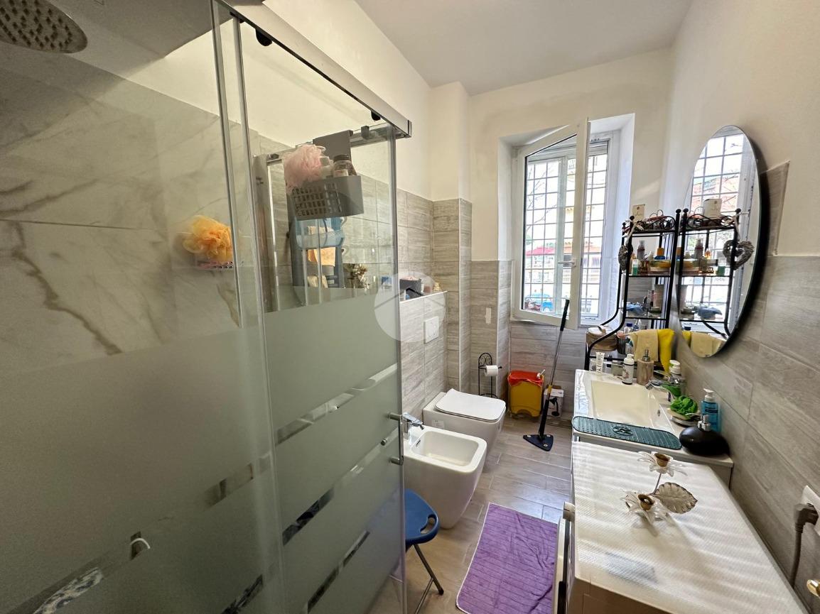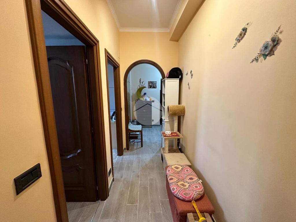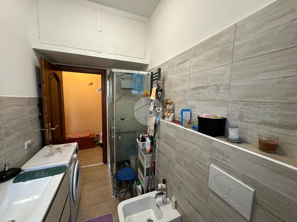 Ingresso, salone, cucina, due camere da letto, uno studio e un bagno finestrato con box doccia. La disposizione degli ambienti è ottimale: la zona giorno è ben separata dalla zona notte, assicurando riservatezza e comfort.