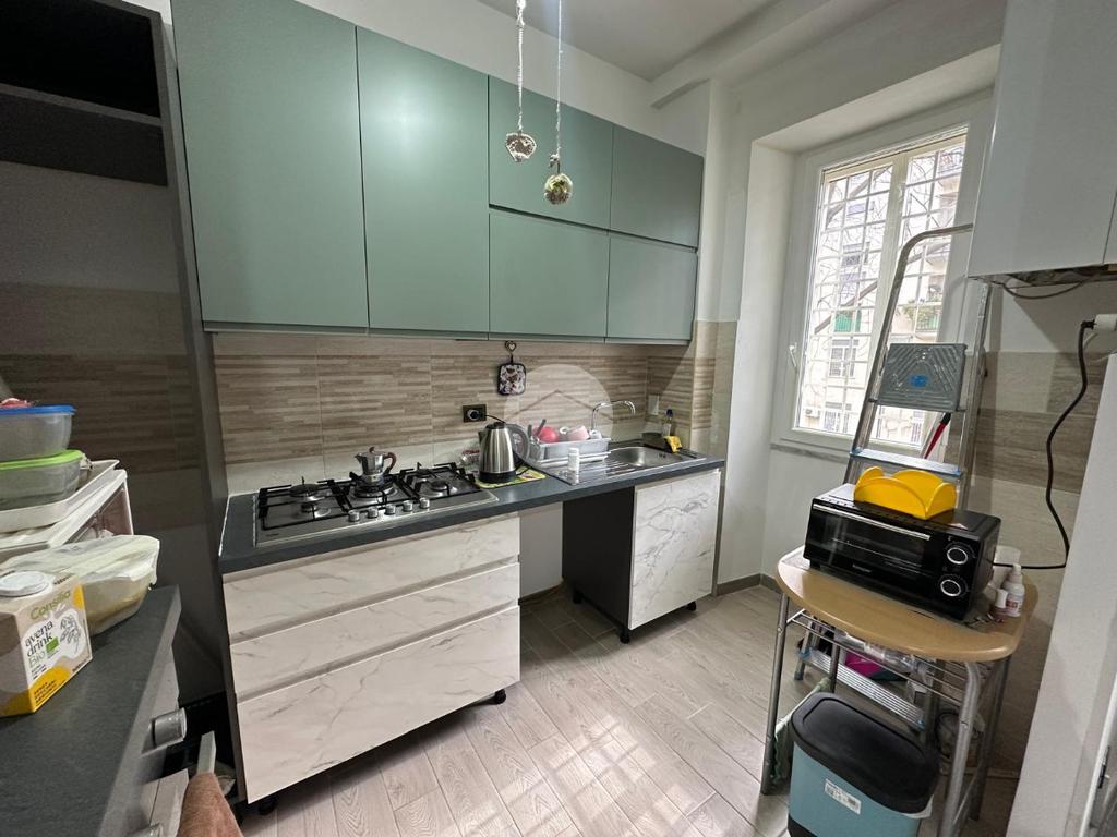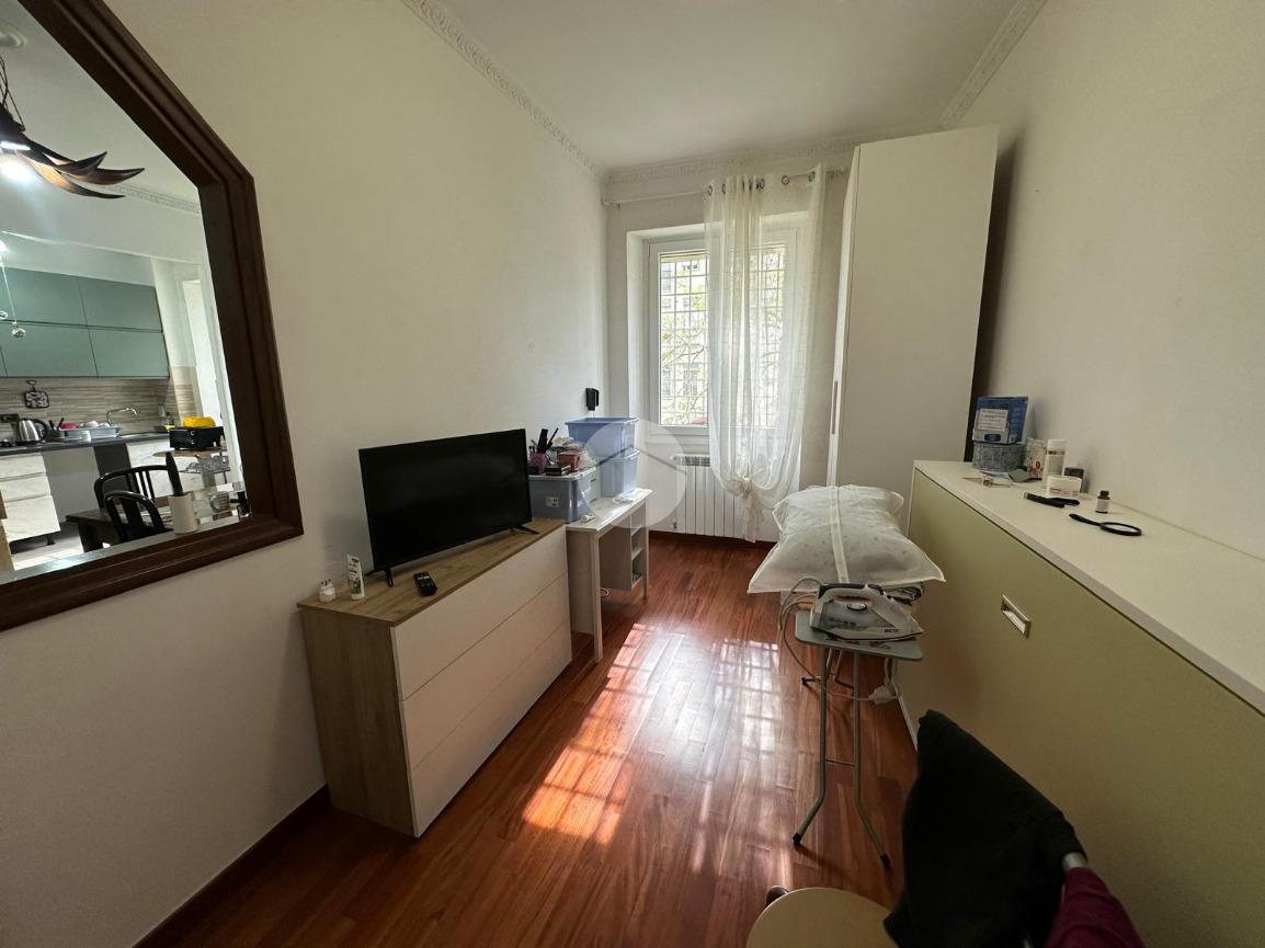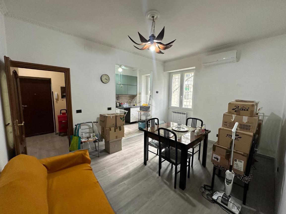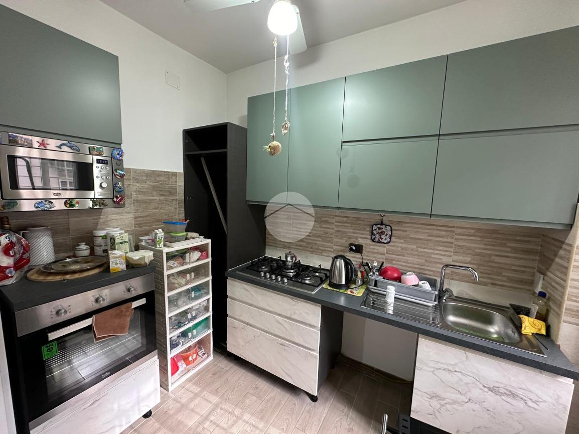 Ingresso, salone, cucina, due camere da letto, uno studio e un bagno finestrato con box doccia. La disposizione degli ambienti è ottimale: la zona giorno è ben separata dalla zona notte, assicurando riservatezza e comfort.